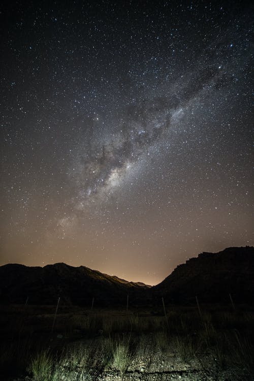 在漆黑的夜晚,蓝色的星空 · 免费素材图片