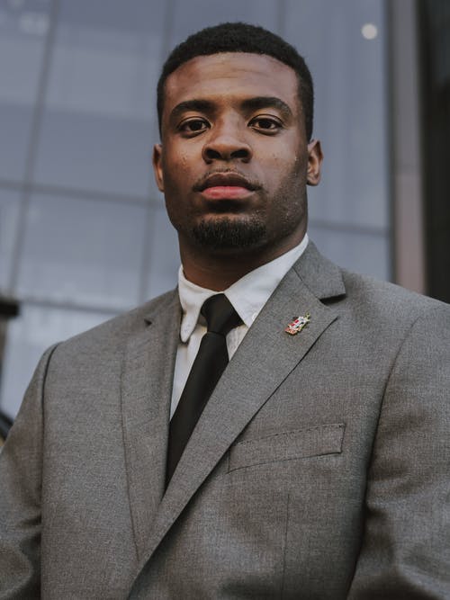严重的黑商人,靠在玻璃墙上 · 免费素材图片