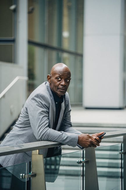 有智能手机的严肃的黑人在大厦附近 · 免费素材图片
