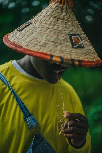 棕色编织帽子和蓝色圆领衬衫的男人 · 免费素材图片