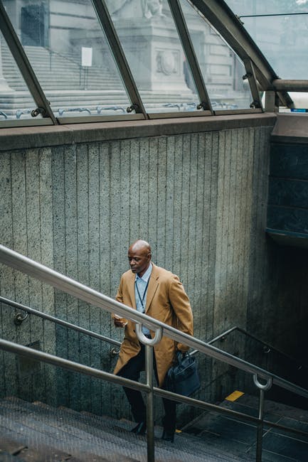 在地铁楼梯上楼上去的黑商人 · 免费素材图片