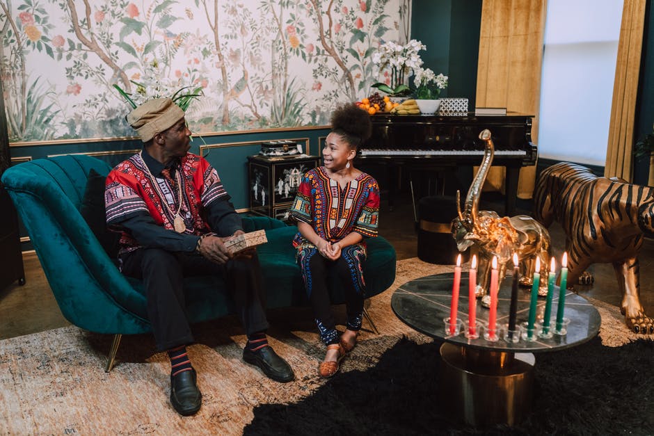男人和女人坐在绿色的沙发上 · 免费素材图片