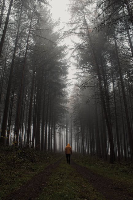 孤独的旅行者,走在迷雾森林 · 免费素材图片