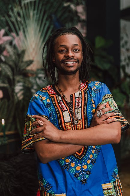 蓝色和棕色服装的男人微笑着 · 免费素材图片
