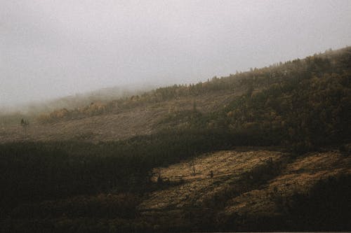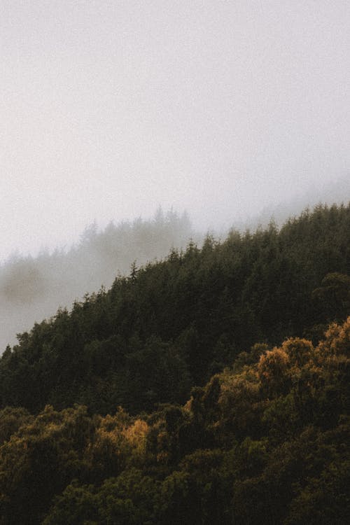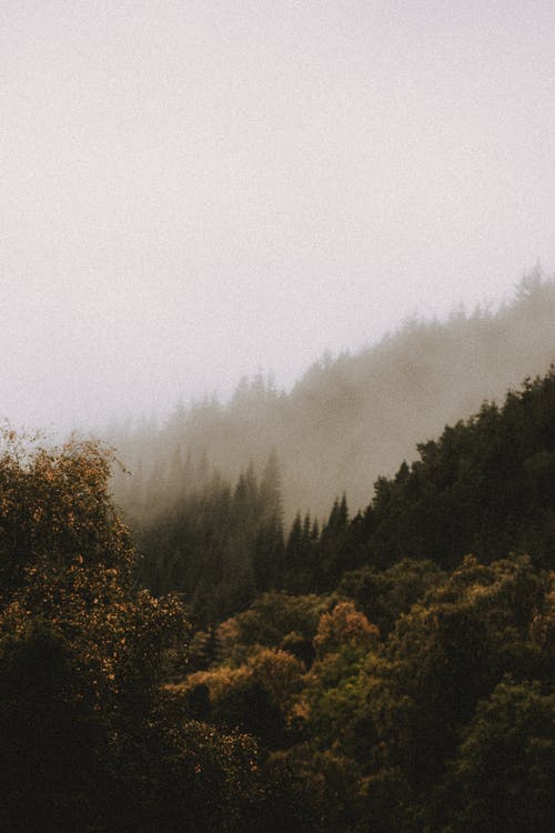 秋天的白色天空下的山脊之间的海洋 · 免费素材图片