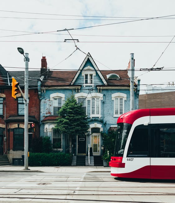 街中央的白色和红色缆车 · 免费素材图片