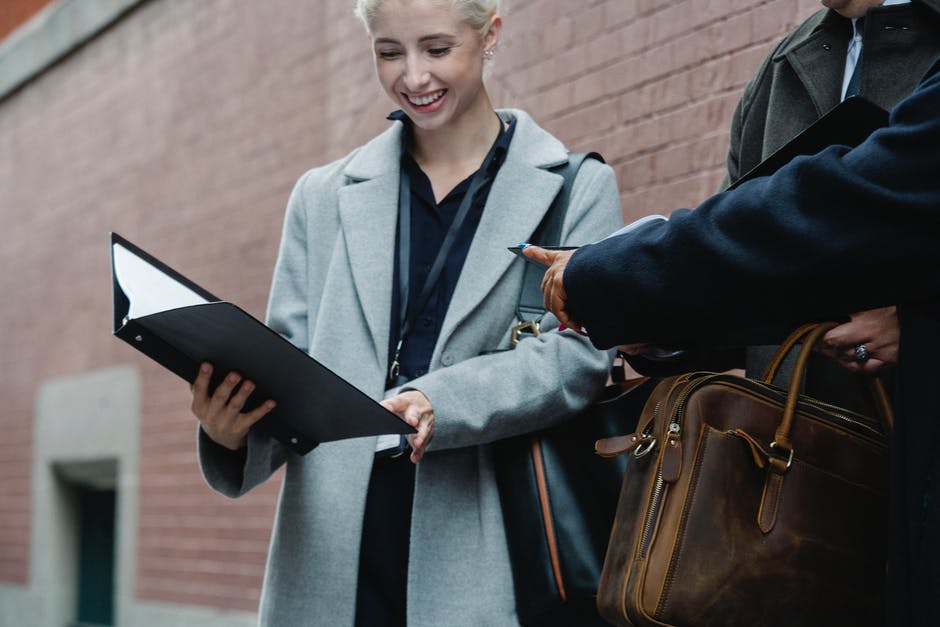 讨论快乐的工友站立在砖墙附近的业务项目 · 免费素材图片