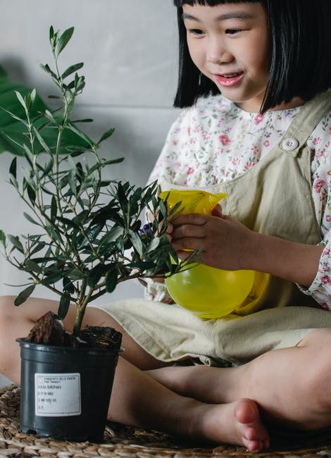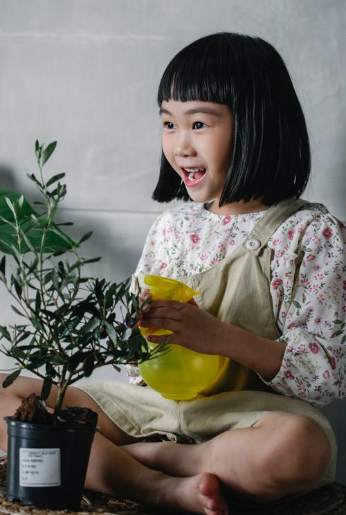 可爱的族裔女孩在家喷涂植物 · 免费素材图片