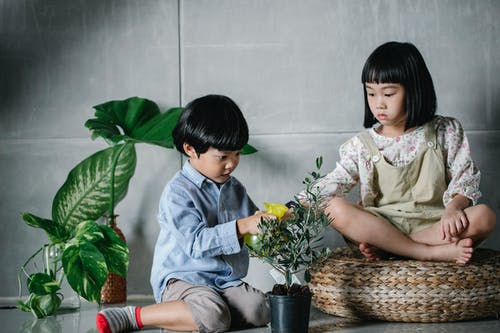 小民族儿童喷洒茂盛的植物 · 免费素材图片