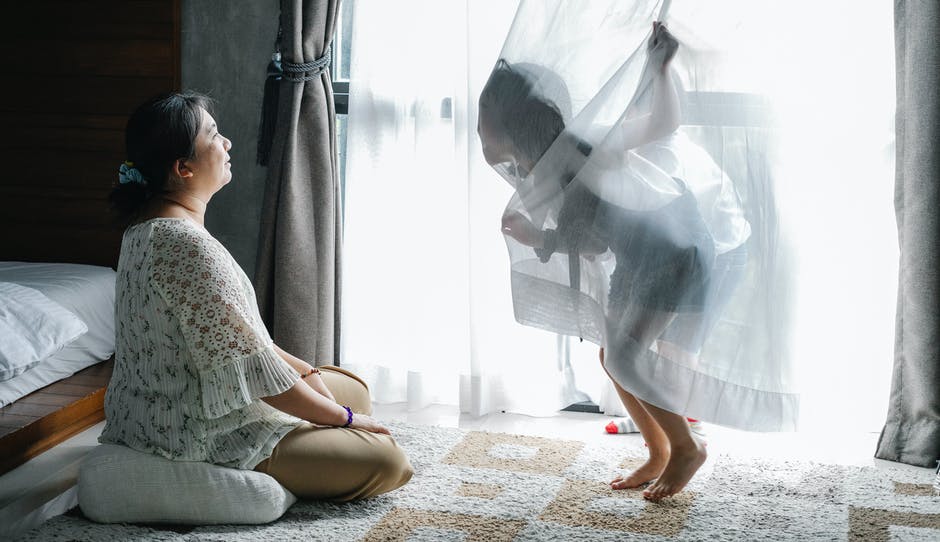 高级女人和孩子们在卧室里玩 · 免费素材图片