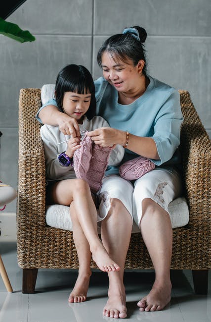 快乐的亚洲孩子和善良的祖母编织保暖的衣服 · 免费素材图片
