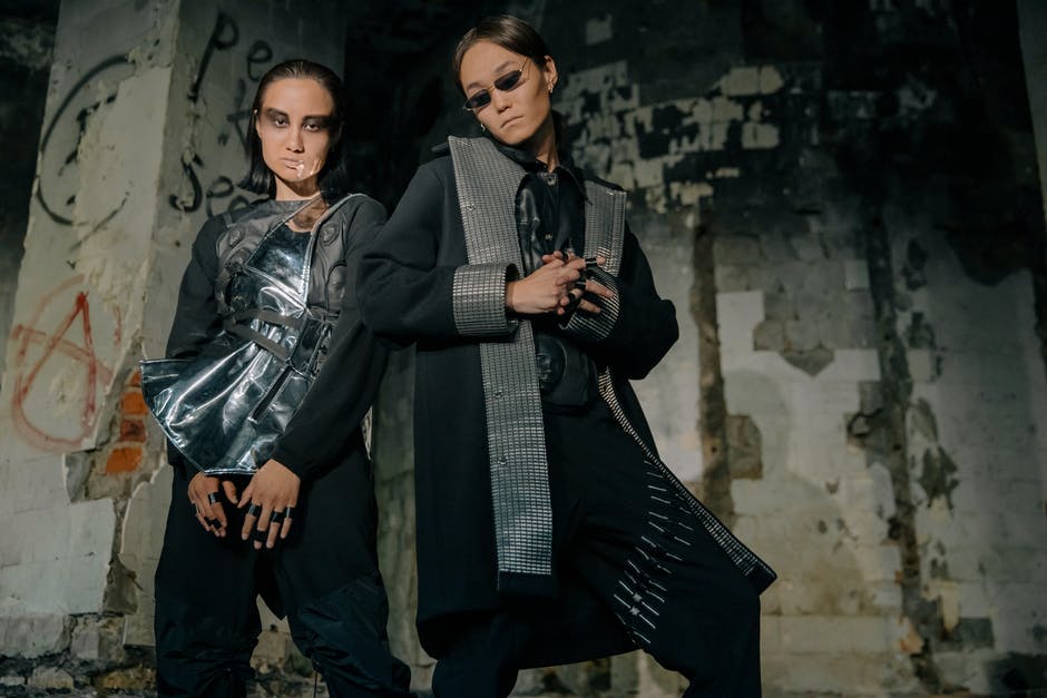 站在蓝色牛仔夹克的女人旁边的黑色西装外套的男人 · 免费素材图片