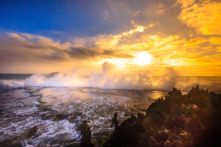 橙色地平线在海滩上的夕阳 · 免费素材图片