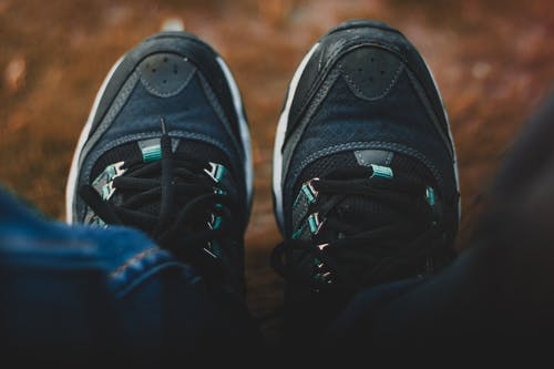 一双白色和灰色的跑步鞋的照片 · 免费素材图片