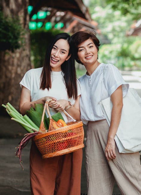 在城里的蔬菜篮的快乐亚洲女友 · 免费素材图片