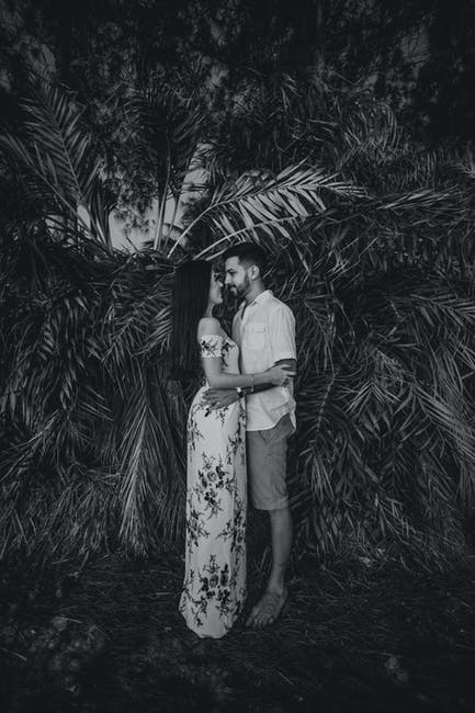 夫妇站在植物旁边的单色照片 · 免费素材图片