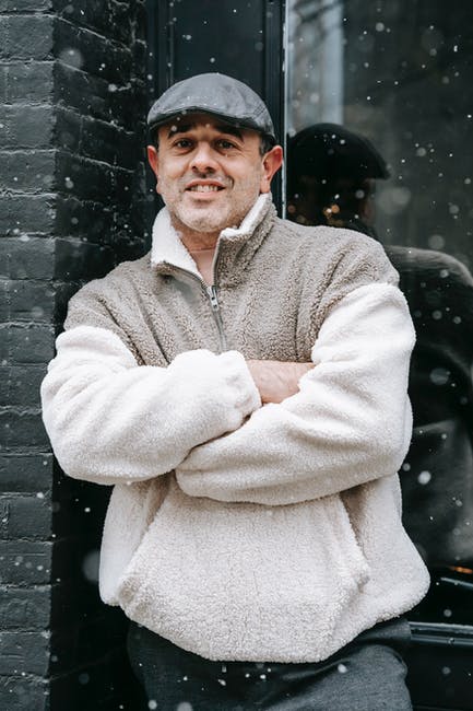 站在黑墙附近的灰色外套的男人 · 免费素材图片
