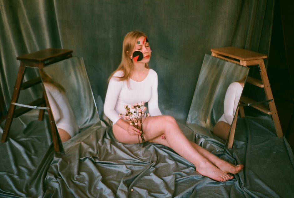 女人穿着白色勺脖子长袖monokini控股厂附近两个镜子 · 免费素材图片