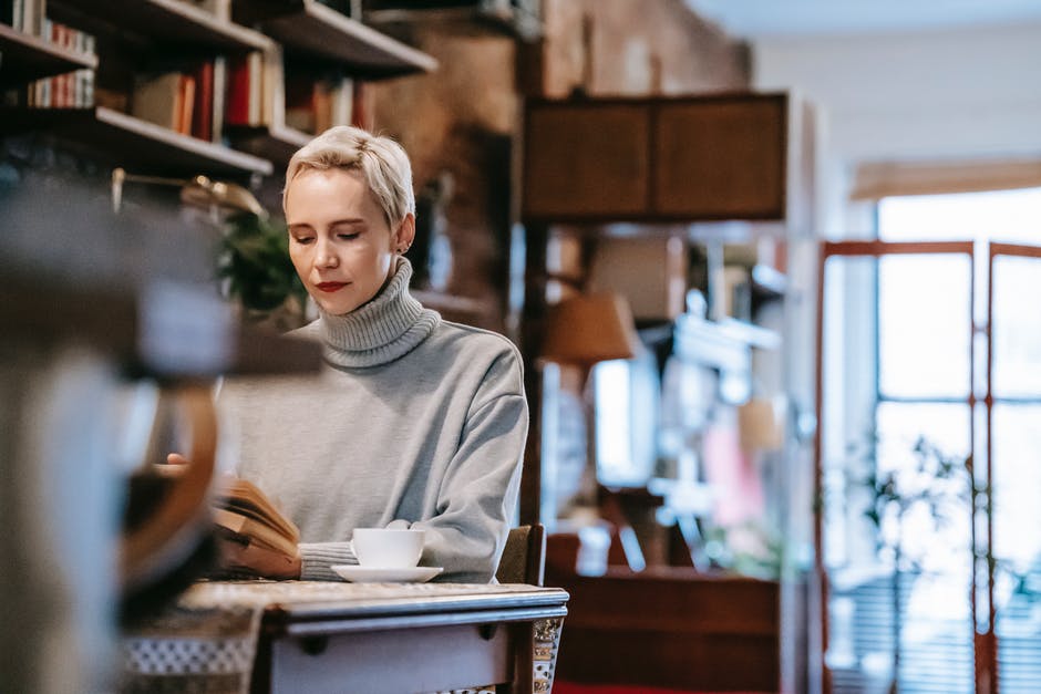 灰色高领毛衣坐在棕色的木椅上的女人 · 免费素材图片