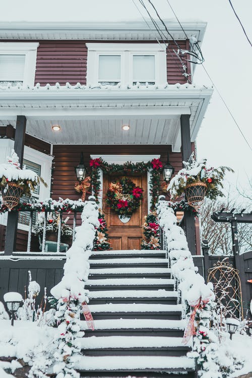 现代房屋外墙与墙上的圣诞装饰 · 免费素材图片