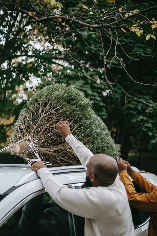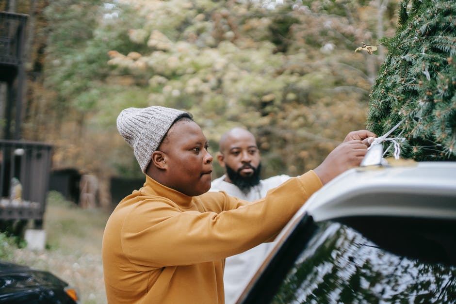 黑人青少年绑枞树在父亲附近的车顶上 · 免费素材图片