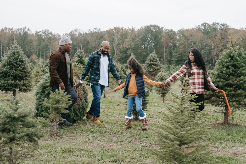 性格开朗的黑人家庭与自然的圣诞树 · 免费素材图片