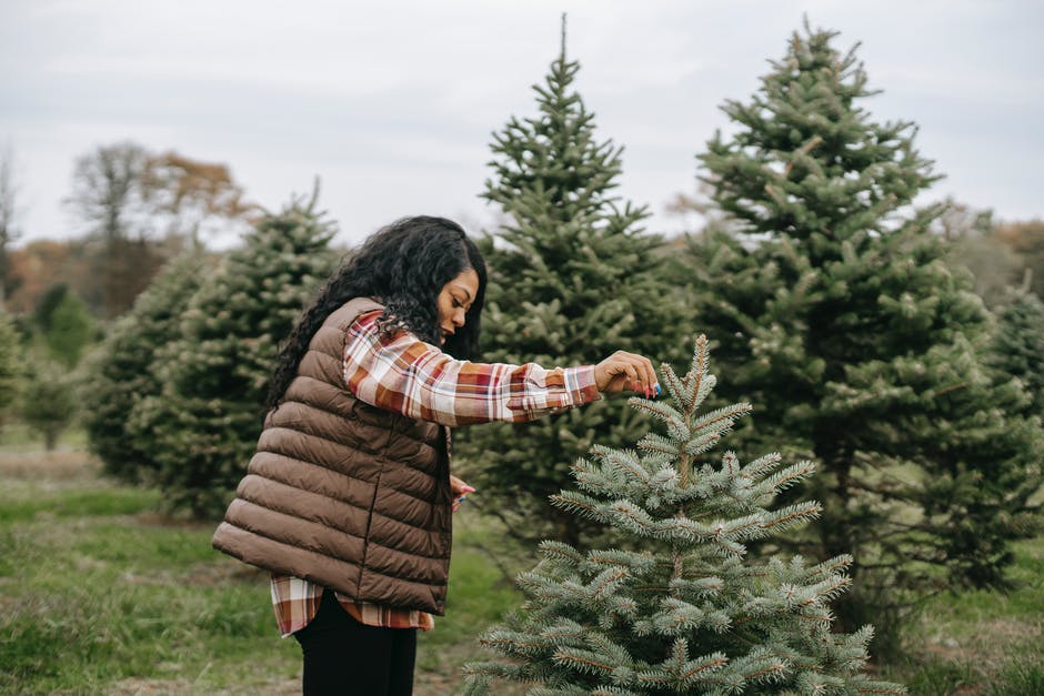 黑人妇女触摸针叶树为圣诞节庆祝活动 · 免费素材图片