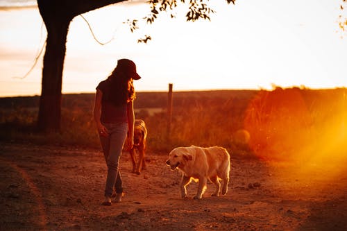 作物男孩walking狗在平铺的路面上的皮带上 · 免费素材图片