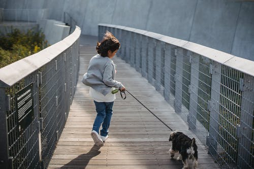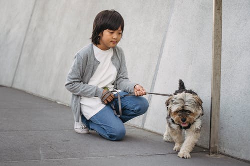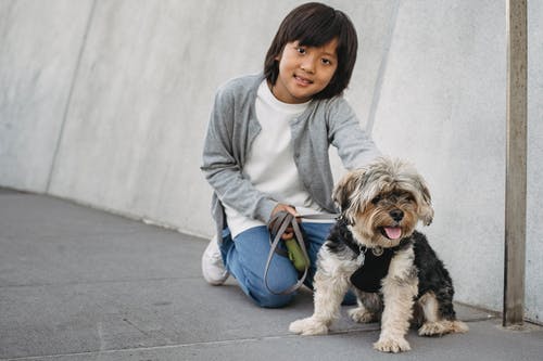 快乐的小男孩和小狗一起跑 · 免费素材图片
