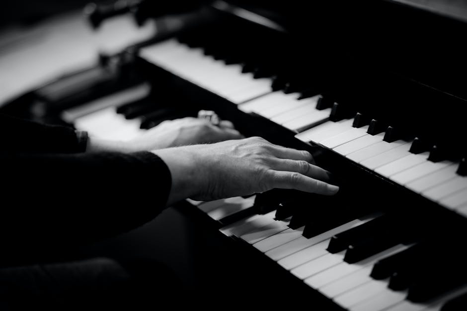 演奏音乐器官灰度照片的人 · 免费素材图片