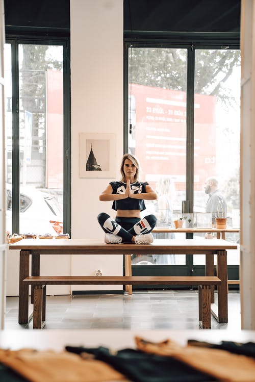 白色背心和黑色的裤子,坐在黑色的长椅上的男人 · 免费素材图片