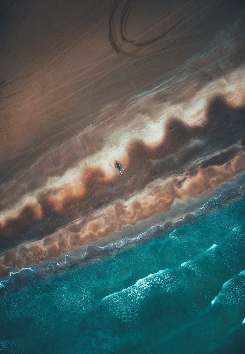 遥远的不可识别的人,在波浪的海洋沙质海岸 · 免费素材图片