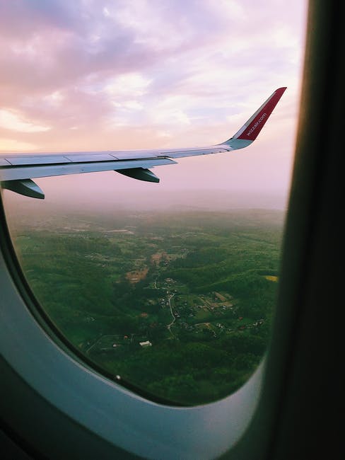 横跨弯曲飞机机翼的飞机窗口 · 免费素材图片