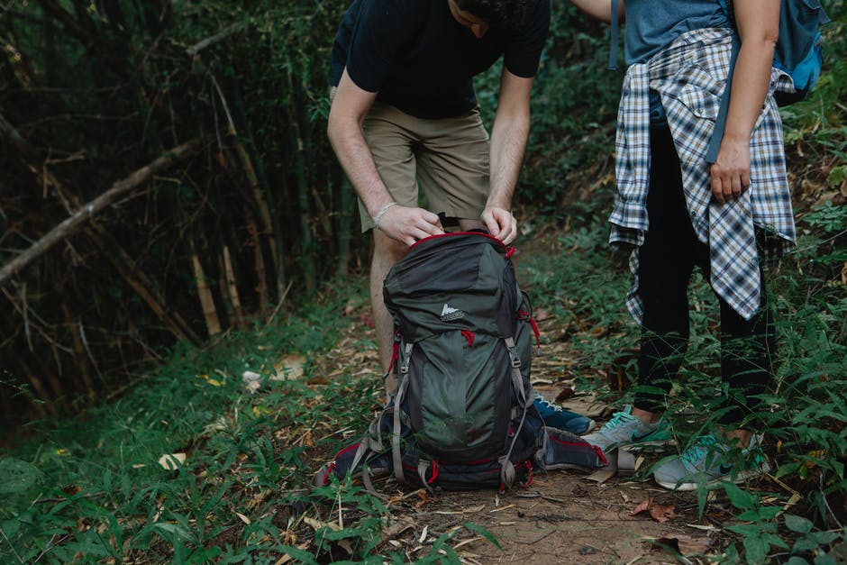 黑色t恤和蓝色和白色格子短裤搭配黑色背包的人 · 免费素材图片