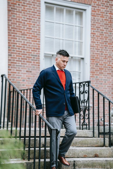 蓝色的衬衫和黑色的裤子,站在黑色的金属栏杆上的男人 · 免费素材图片