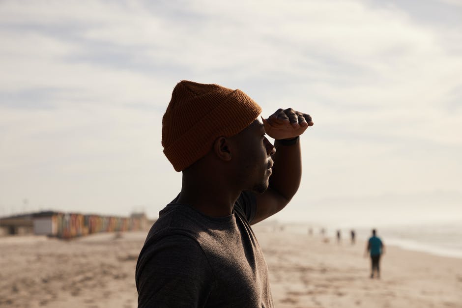 戴着帽子站在海边的黑人男子 · 免费素材图片
