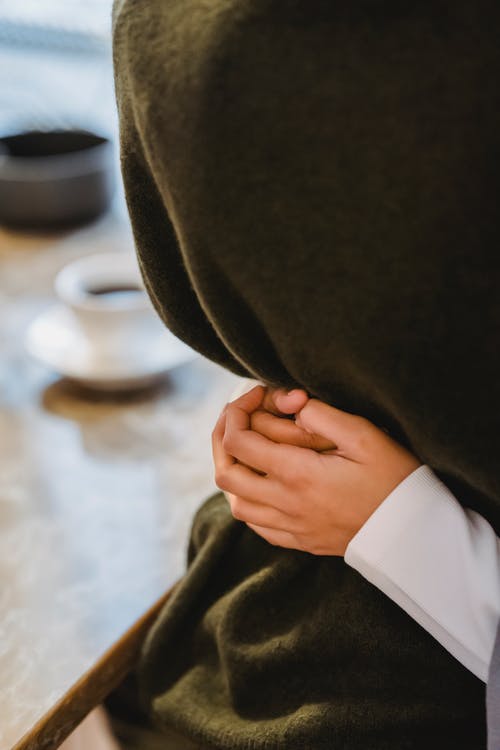 坐在椅子上的黑色连帽衫的女人 · 免费素材图片