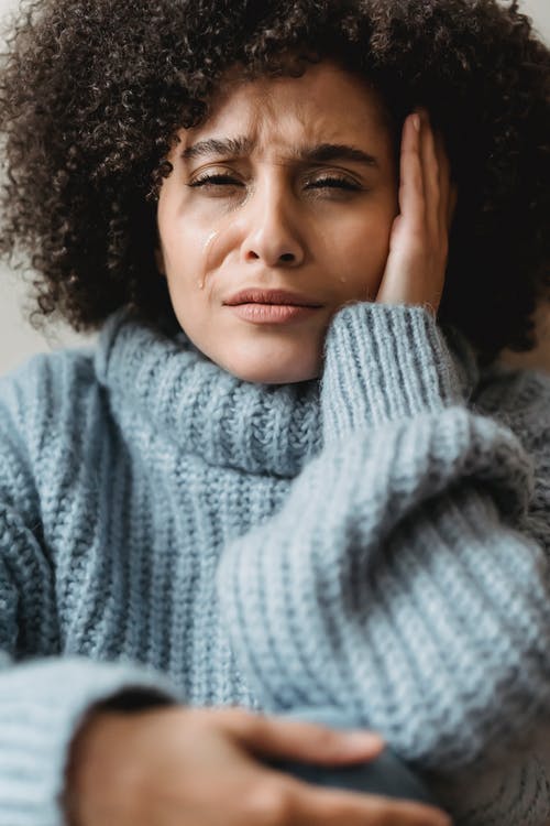 灰色针织毛衣微笑的女人 · 免费素材图片