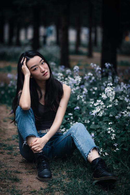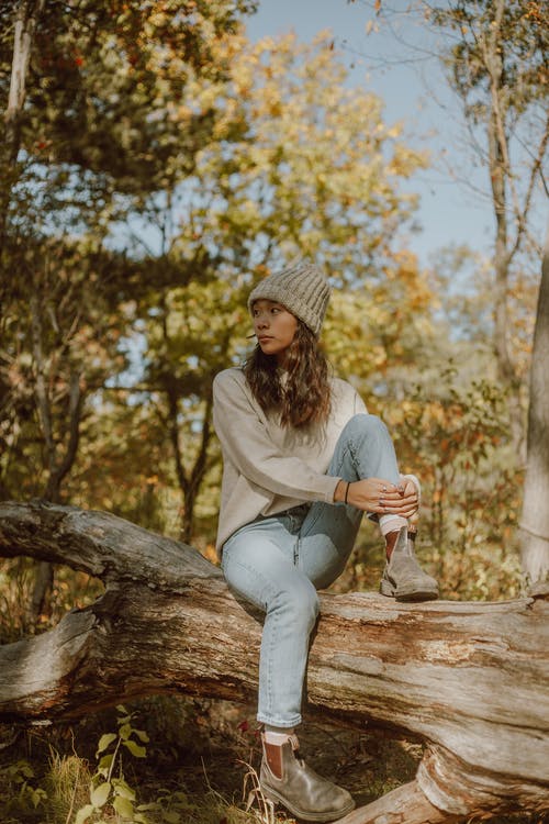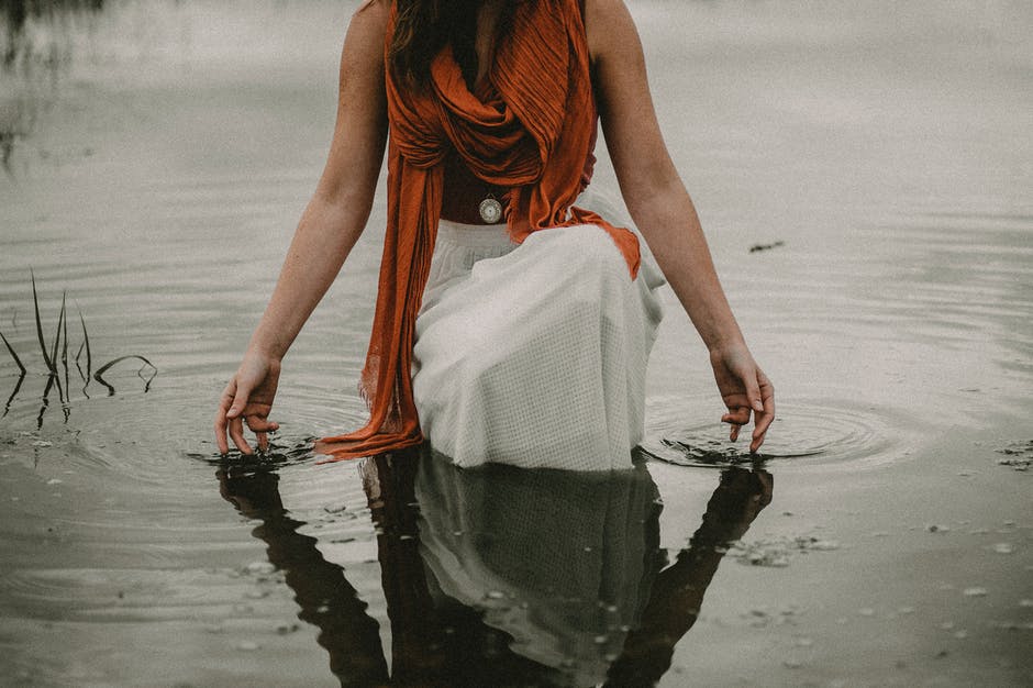 不露面宁静的女人,在湖中碰水 · 免费素材图片