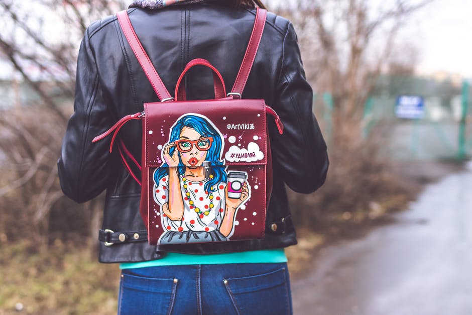 穿着红色和彩色皮革背包的人 · 免费素材图片