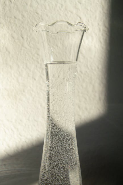 黑桌上的透明玻璃花瓶 · 免费素材图片