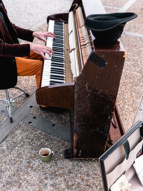 在户外玩棕色立式钢琴的人 · 免费素材图片