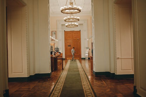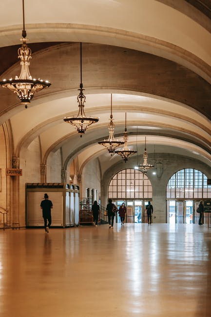 人们用玻璃吊灯沿着拱形通道走 · 免费素材图片