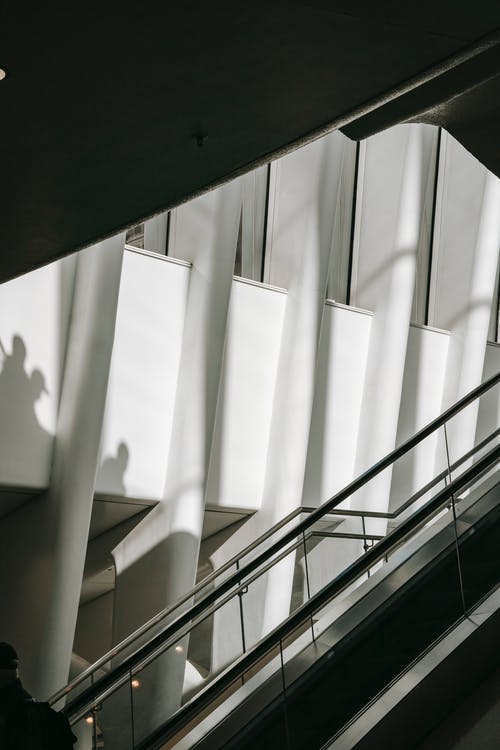 在现代建筑与阴影墙附近的自动扶梯 · 免费素材图片