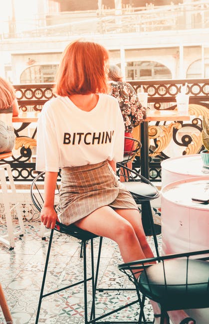 女人看着别处坐在凳子上的照片 · 免费素材图片