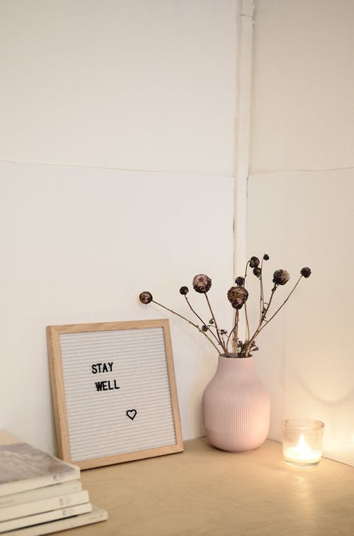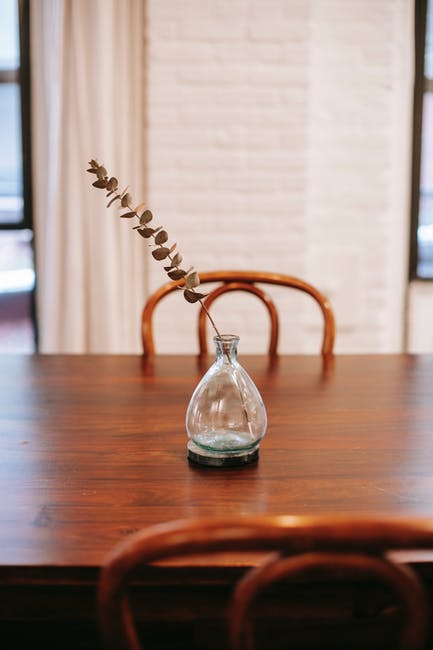 玻璃花瓶与干植物木制的桌子上 · 免费素材图片