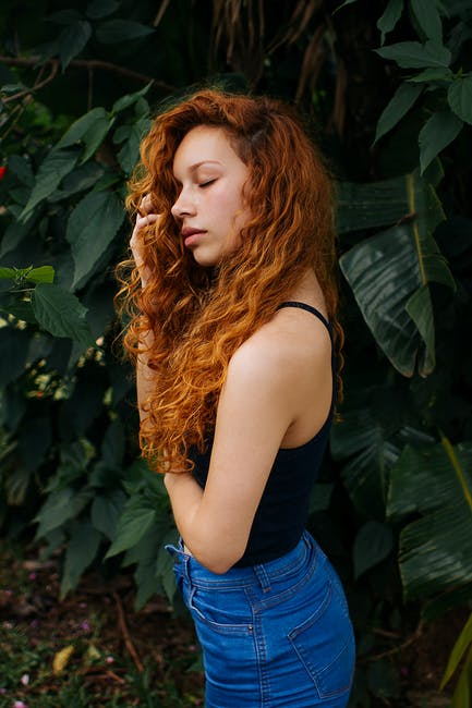 女人穿着蓝色的牛仔裤和无袖的上衣,闭着眼睛 · 免费素材图片