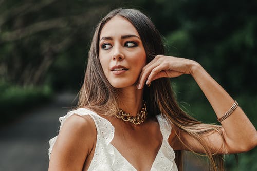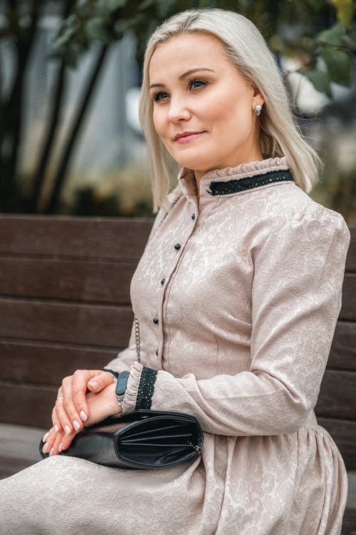 抱着她的头发的米色外套的女人 · 免费素材图片