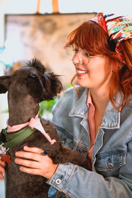 拿着黑色短涂狗的蓝色牛仔夹克的女孩 · 免费素材图片