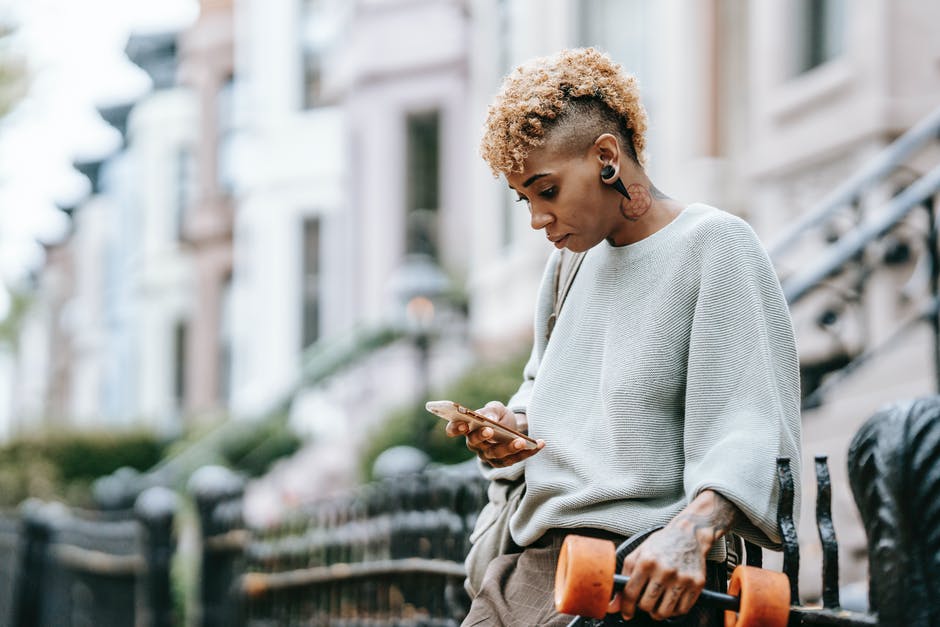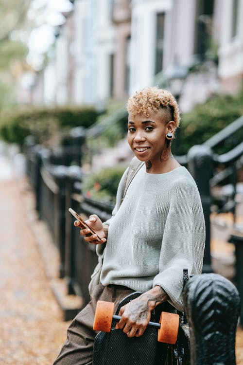 细心的族裔女人在城里的智能手机上聊天 · 免费素材图片